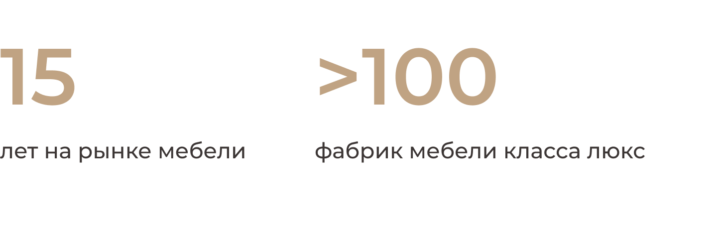 В нашем распоряжении более 100 производителей мебели класса люкс, которые готовы производить выбранную вами модель, с учетом ваших дополнительных пожеланий. Наши партнеры предлагают безграничные возможности персонализации мебели и самые невероятные варианты отделки и декора.